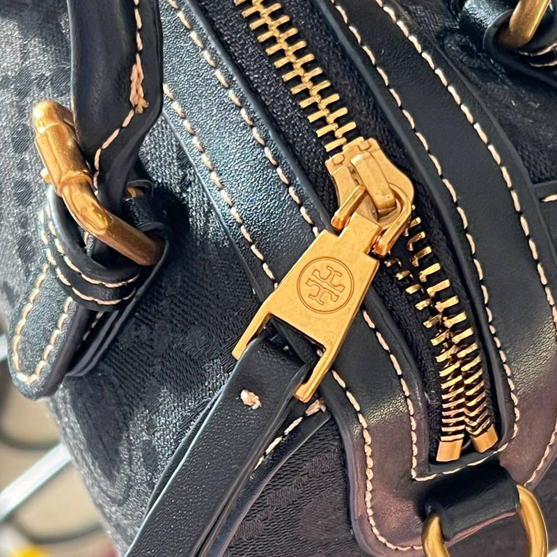 💎 جزئیات: لوگوی فلزی برند Tory Burch در بخش جلویی